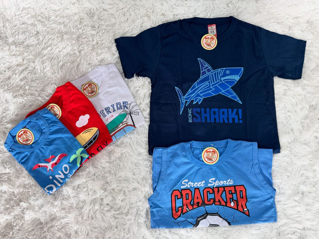 A Camiseta Sem Manga com Estampas Diversas é perfeita para acompanhar a energia das crianças nos dias mais quentes. Com opções de desenhos que vão de dinossauros a caminhões, passando por tubarões, futebol, robôs, surf e muito mais, essa peça une conforto e criatividade em um só lugar.
